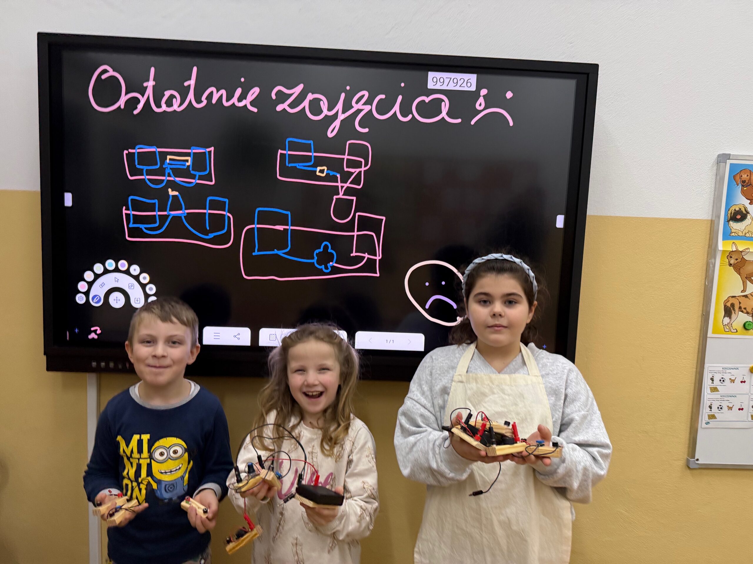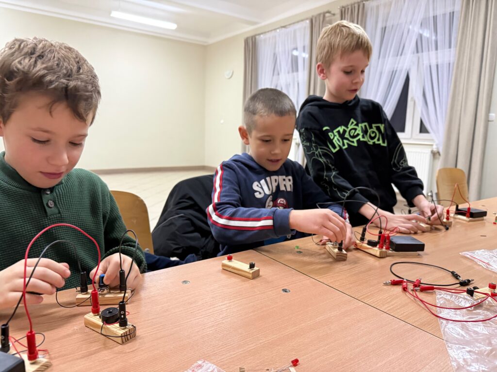 Za nami ostatnie spotkanie naszej przewrotnej grupy w programie edukacyjnym „Odkrywcy”! Tym razem zanurzyliśmy się w świat obwodów elektrycznych – poznaliśmy podstawy działania, źródła zasilania i ich rolę w obwodzie, a także przewody, przełączniki i włączniki. 💡