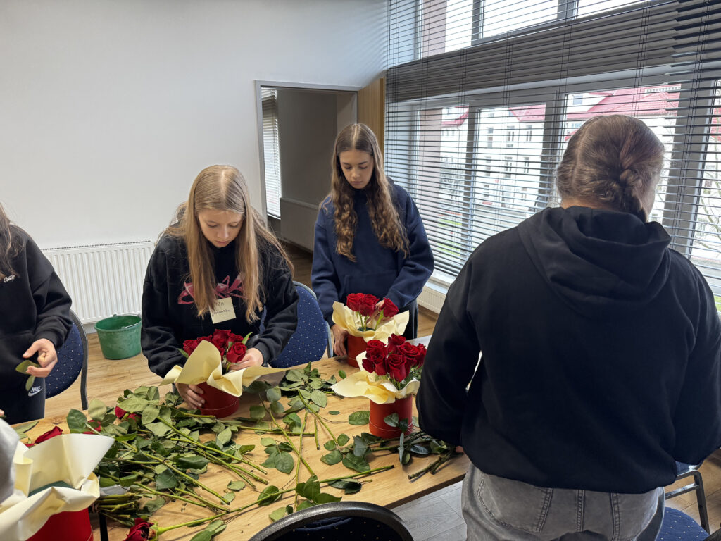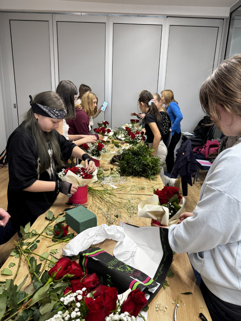 Praca nad kompozycjami wymagała wyczucia estetyki, doboru kolorów oraz precyzyjnego układania kwiatów, a uczestniczki poradziły sobie z tym znakomicie. Ich projekty nabierają wyjątkowego charakteru, a każdy kolejny krok pokazuje, jak bardzo rozwinęły swoje florystyczne umiejętności. 💐✨