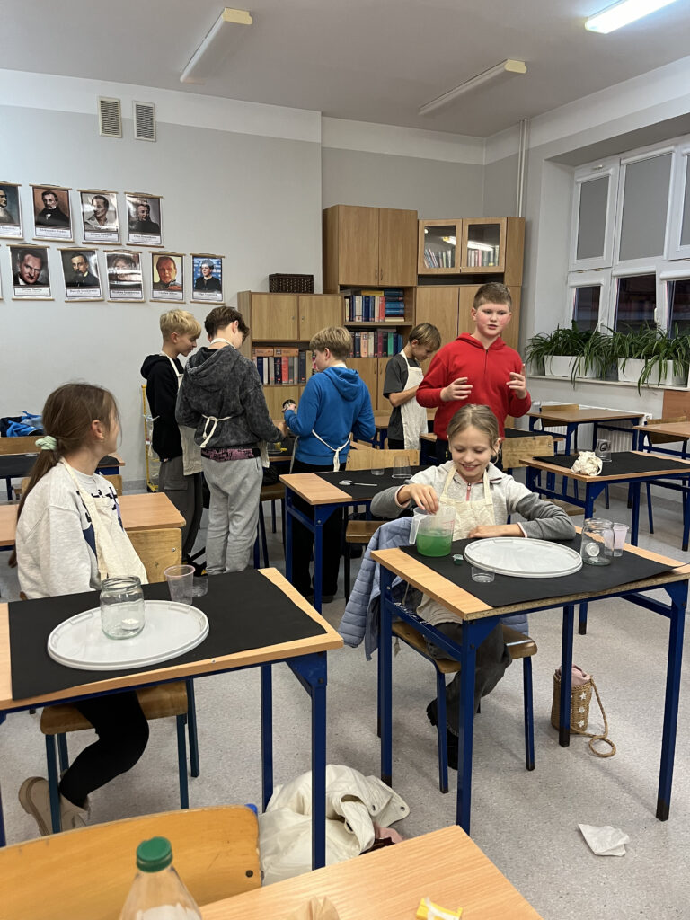 Całość zajęć łączyła chemię z plastyką, zachęcając do eksperymentowania, mieszania, tworzenia i odkrywania. To była prawdziwa uczta dla zmysłów i świetna okazja, by naukę połączyć z zabawą na najwyższym poziomie.